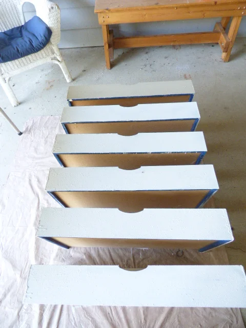 1. Primer. I used what we had on hand. Primer was important because of the dark blue being covered by the off white. I did both the cabinet and the drawers.