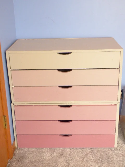 3. After I painted the next drawer then I added 2 more tablespoons of the red and painted another drawer. I kept this pattern on each drawer. Then on the last drawer I added a bunch of red. I absolutely love how it turned out!